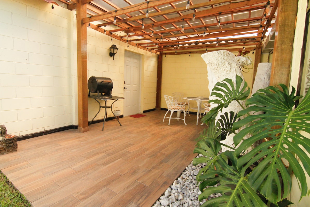 Przytulne i dyskretne mieszkanie położone w cichej i centralnej dzielnicy San Salvador. Miejsce jest przeznaczone dla 3 gości (maks. 4) i wyposażone we wszystko, czego potrzebujesz do komfortowego pobytu: 1 sypialnia z klimatyzacją i prywatną łazienką z ciepłą wodą Stabilne Wi-Fi i telewizor z HDMI Świeży, dobrze wentylowany taras Prywatny parking dla 1 pojazdu Samodzielne zameldowanie z ręcznym kodem do skrytki. Zaledwie 5 minut od Galerías Mall i 42 km od międzynarodowego lotniska.