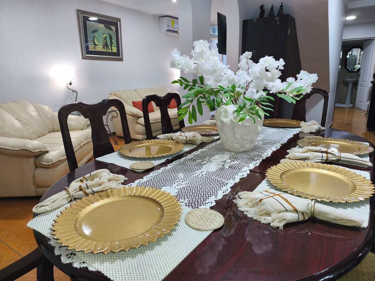 Przytulna i rodzinna atmosfera, 2 pokoje z klimatyzacją, 3 podwójne łóżka, wyposażona kuchnia, jadalnia, PRIME Video, dwie łazienki, pralka-suszarka, żelazko i deska do prasowania, lokalizacja pozwala cieszyć się różnymi środowiskami: 5 minut od Plaza Merliot i 7 minut od Parque el Principito. W 10 minut dotrzesz do centrów handlowych, takich jak multiplaza, the great track i walk the carmen. El Parque el boquerón i jego restauracje znajdują się zaledwie 20 minut, 40 minut od plaż i centrum historycznego.