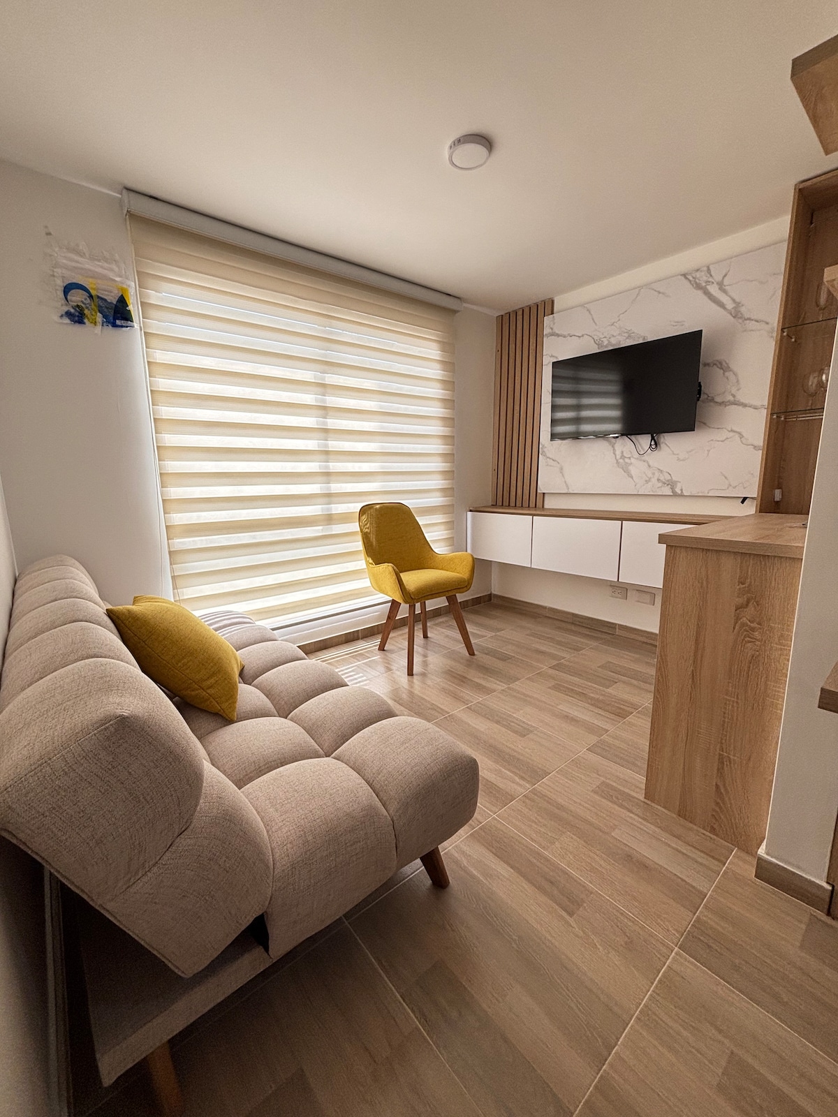 This stunning 2 bedroom, 2 bathroom apartment in Bogota's Ciudad Salitre neighborhood is the perfect home away from home. It has 2 beds and a sleeper sofa, it has been freshly remodeled for your comfort. Located just 10 minutes from the airport. The apartment is fully furnished and comes with all the necessary essentials, including a fully equipped kitchen and a private balcony. Safety is a top priority, with 24/7 security.Enjoy the comfort of this amazing apartment. Come and enjoy Bogota