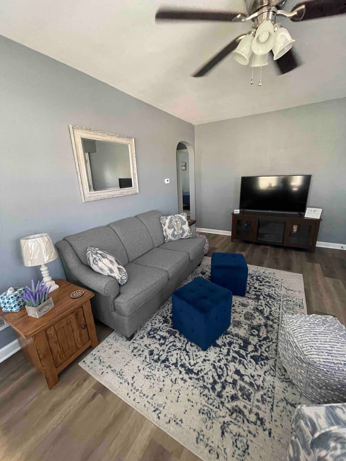 Zrelaksuj się z całą rodziną w tym spokojnym miejscu na pobyt. Dwie sypialnie z łóżkiem typu queen i pełnym materacem. Szafa i komoda w każdym pokoju. W pełni zmodernizowana kuchnia. Pralka i suszarka w piwnicy. Garaż na jedno auto. Taras na zewnątrz. Jedna pełna łazienka. Doświadczeni gospodarze Airbnb. To jest mój dom „babci”, w którym mogę się zatrzymać, aby odwiedzić moje dzieci. Jest wspaniały!