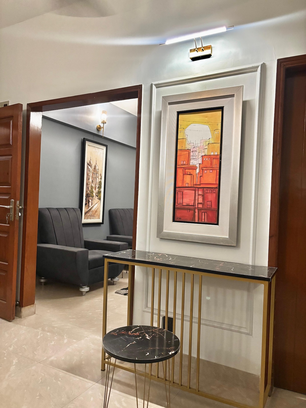 Przytulny, w pełni umeblowany apartament wyposażony we wszystkie niezbędne udogodnienia, dzięki którym poczujesz się jak w domu. Ciesz się świeżymi, luksusowymi kołdrami, miękkimi poduszkami i nowoczesnymi udogodnieniami, które zapewnią Ci relaksujący pobyt. Położony w centrum najbardziej ekskluzywnej i przyjaznej rodzinom dzielnicy Karaczi, zaledwie 4 minuty od plaży. W pobliżu znajdziesz wiele restauracji, kawiarni, centrów handlowych i salonów. Bezpieczny budynek i okolica, idealne dla rodzin i długich pobytów.