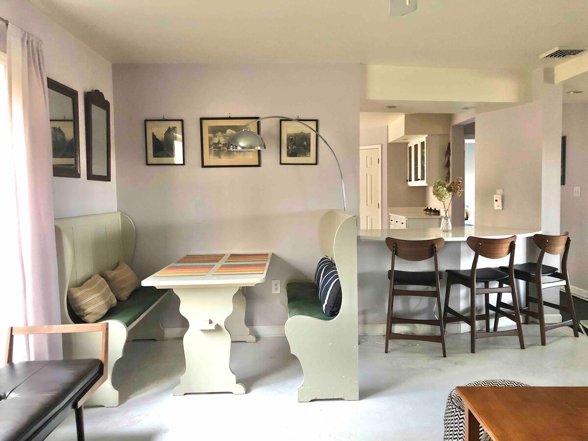 Brak listy obowiązków. Po prostu zrelaksuj się! Teraz akceptuję psy w zależności od przypadku. Należy zapytać PRZED DOKONANIEM REZERWACJI. Ta urocza rezydencja, położona kilka minut od zabytkowej wioski Rhinebeck, jest idealnym miejscem na romantyczny lub relaksujący wypoczynek. Położony bezpośrednio przy trasie 9, ukryty wśród drzew. Ciesz się naszym całkowicie oddzielnym domkiem pełnym sztuki. Otwarty plan piętra studio o powierzchni 550 stóp kw. z radością pomieści pary i bliskich przyjaciół. MAKSYMALNIE 4 osoby Najlepiej nadaje się dla dorosłych gości, ponieważ miejsce nie jest zabezpieczone przed dziećmi.