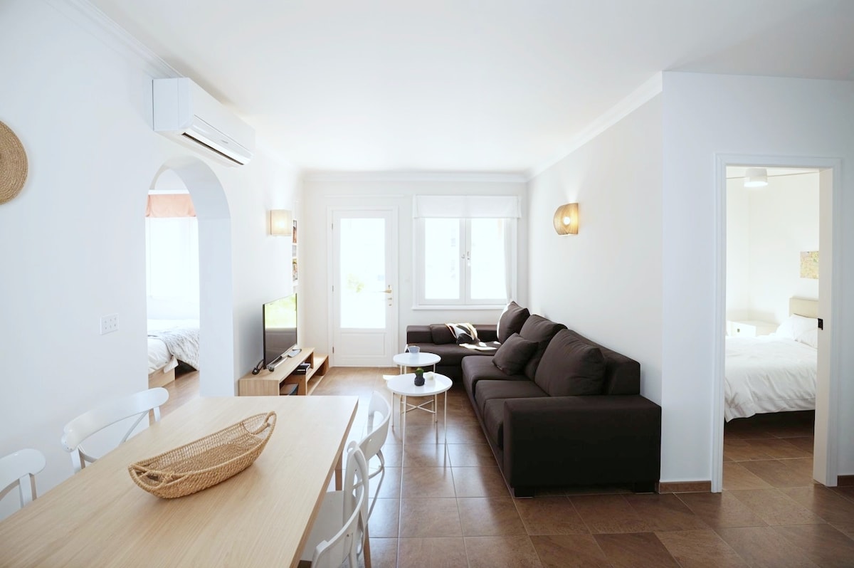 Jasny i przytulny apartament kilka metrów od plaży, idealny na kilka dni relaksu i komfortu, z prywatnym tarasem. Lokalizacja tego apartamentu jest również idealna do zwiedzania śródziemnomorskiej wycieczki jeździeckiej, parku naturalnego marmuru Pego-Oliva lub pola golfowego Oliva Nova. AiguaMorta guesthouse, a perfect stay, near to all the services offered by San Fernando, Restaurante, supermarket, pharmacy, sports complex.