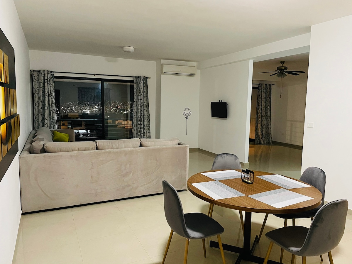 Piękny, przestronny apartament z udogodnieniami. Klimatyzacja, kuchnia, pralko-suszarka, biurko. Kilka balkonów. Jedna łazienka znajduje się poza sypialnią, a druga wewnątrz pokoju. Widok na miasto jest doceniany. Restauracje i centrum handlowe bardzo blisko apartamentu. Na najwyższym piętrze znajduje się prywatny taras (zapytaj) z widokiem na miasto, jeśli chcesz cieszyć się widokiem lub zrobić pieczone mięso. Idealne na romantyczną kolację. Ma tinaco
