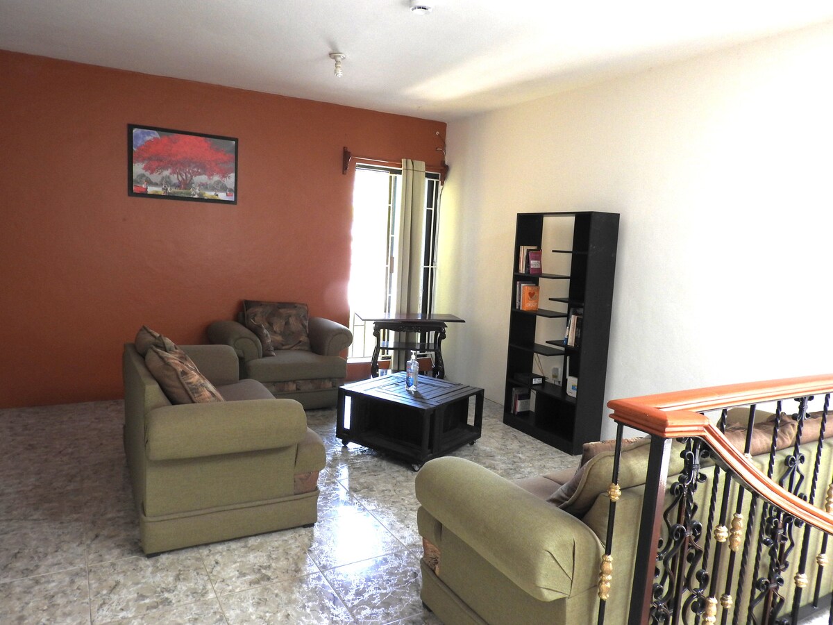Rozkoszuj się pięknym, prywatnym pokojem wyposażonym tak, aby zapewnić Ci komfort i relaks. Znajdziesz tu łóżko typu king-size i podwójne łóżko, wysokiej jakości materace, cedrową komodę, szafę na ubrania i bagaż, miejsce do pracy i 40-calowy telewizor. Pokój z prywatną łazienką z ciepłą wodą, ręcznikami i przyborami toaletowymi. Udogodnienia obejmują klimatyzację typu mini-split, suszarkę do włosów, żelazko, szybkie Wi-Fi (Izzi i Telmex), telewizję kablową, parking i dostęp do części wspólnych, takich jak kuchnia, jadalnia i salon, idealne na komfortowy pobyt.