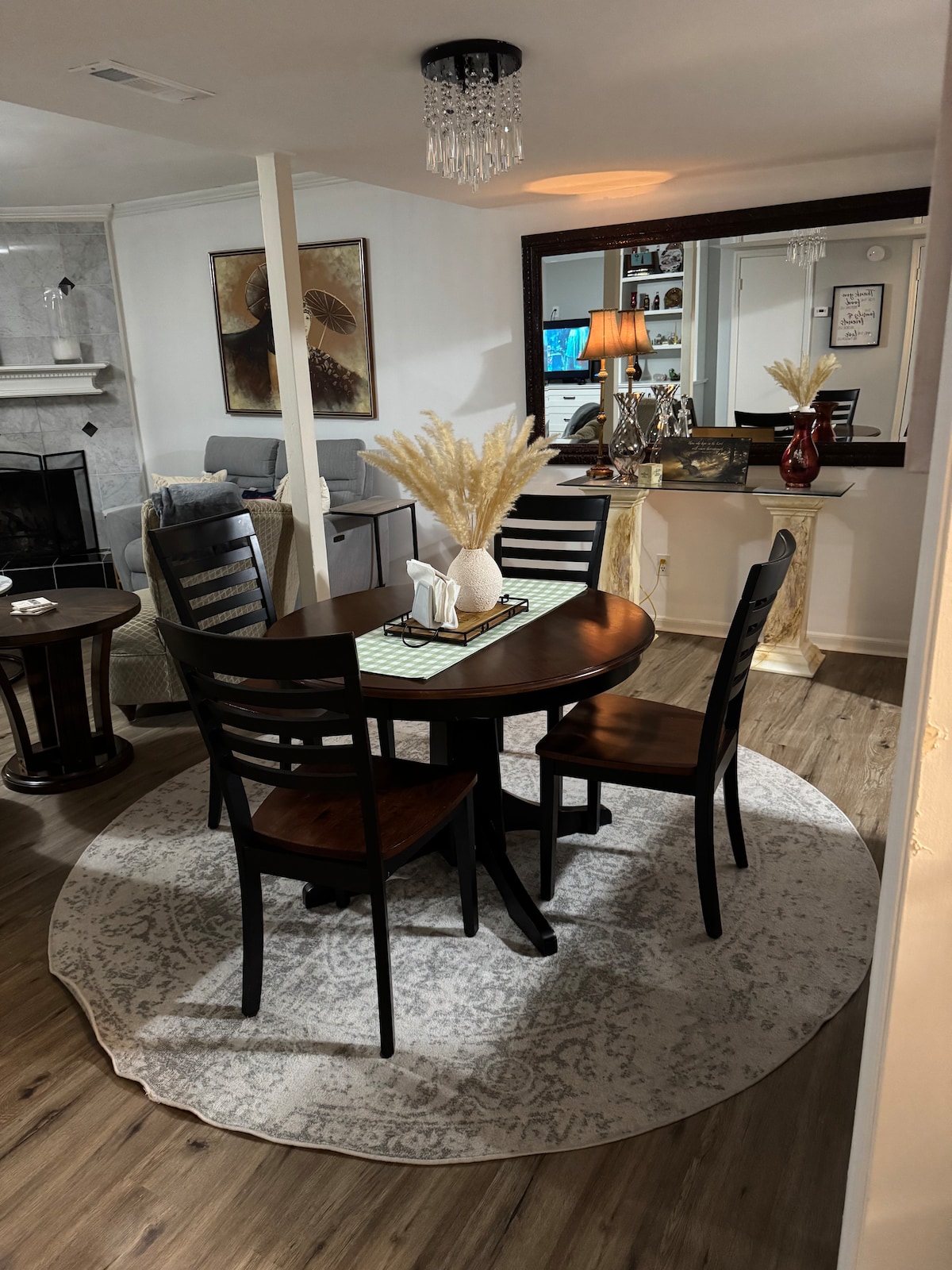 Miłego pobytu w naszym kamienicy w Smyrna. To jest 2 łóżka/2 łazienki z 4 łóżkami. 1 łóżko typu king, 2 pełne i rozkładana sofa typu Queen. W pełni wyposażona kuchnia ze wszystkim, czego potrzebujesz do przyrządzenia wykwintnego posiłku. Wynajem obejmuje wszystkie urządzenia, 3 inteligentne telewizory, pralkę/suszarkę, stół w jadalni, sofę z łóżkiem typu queen i luksusową podłogę z desek winylowych. Na tyłach domu znajduje się zadaszone patio i taras z grillem. Znajduje się w pobliżu restauracji, parków, rozrywki i łatwego dostępu do 285. Go Braves!