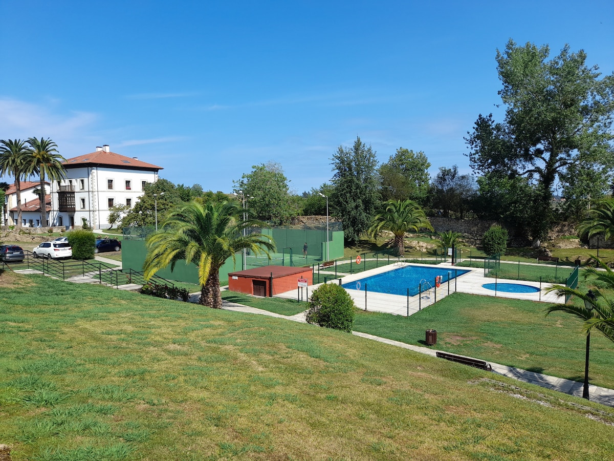 Wspaniałe mieszkanie z 2 sypialniami i widokiem na morze i zamek. ODDZIELNE WEJŚCIE, BEZ PORTALU. Basen dla dorosłych i dla dzieci w prywatnym ogrodzie. Z Wi-Fi. Duży taras ze stołem z widokiem na morze i basen. WIATA GARAŻOWA NA TERENIE OSIEDLA. Bardzo łatwo dojechać z autostrady. 5 minut od supermarketów, ośrodka zdrowia, barów i restauracji. Bardzo cicho, bez hałasu. WIDOK NA OCEAN Z ŁÓŻKA IDEALNE DO SURFOWANIA. Jest tu fortepian.