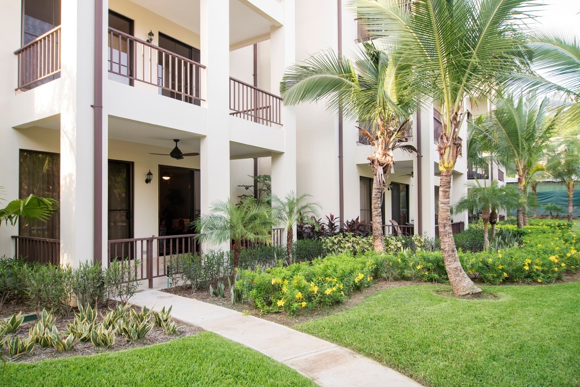 PACIFICO L1302 is a ground-floor condo with a spacious terrace and views of one of several pools in the development. The location of this condo is amazing! Set just inside the main gate of the development, you have quick access to town via both the vehicle and pedestrian gates. You also are just steps from a beautiful pool, surrounded by palm trees and tropical flowers, but set back from the pool so that you can enjoy your shaded patio with peace and privacy.