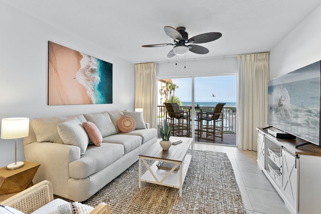 This top-floor condo is just 102 yards from the beach line in the heart of Indialantic. Newly Remodelled w CB2, RH. Surrounded by restaurants and shops, it offers ample space and amenities for every taste: whether it's a romantic getaway, a fun-filled family vacation, a reunion with old friends, or just some much-needed 'me time. Fully equipped with beach gear, kitchen essentials, toiletries, and TVs in each room. Additionally, guests can enjoy the saltwater pool, beautifully lit and open 24/7