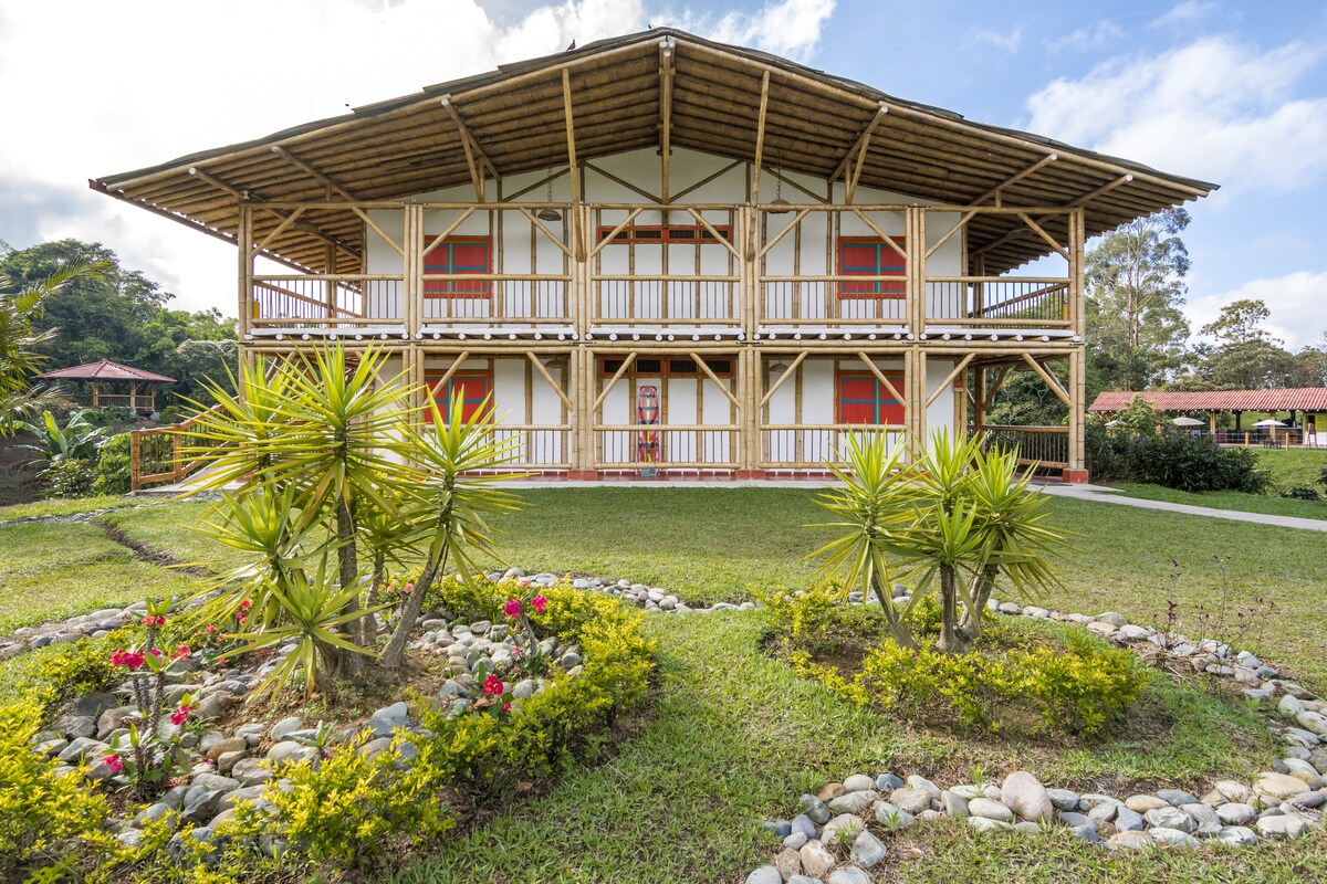 BEAUTIFUL ECOLODGE, gardens, calm river, private view of the historic bridge. Words and photos cannot describe the tranquility here. Picnic areas, swimming in the river, private places for sunbathing. Easy access to Salento but away from traffic and noise. Competitive price, breakfast included. We have 8 rooms, La PLUMA, COLIBRI & BARRANQUERO (1 bed each), LEMON & ORANGE (3 beds each), SAFARI & ZENZU (1 bed). MALOCA (6 beds). Free parking.