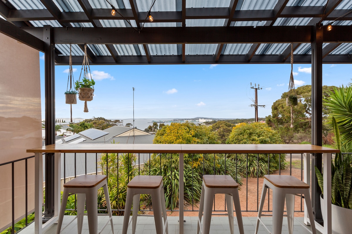 Enjoy a stay at our family friendly home in Port Lincoln. Look through our arched window at stunning views of Boston Bay, Boston island, and our signature gum trees. You can feel like you’re in a semi rural location here, yet we are only 3km from the Port Lincoln foreshore and shopping precinct, and 7 min drive from the airport. The enclosed yard is spacious and complete with sandpit, cubby house, monkey bars, and basketball ring. When it’s down time… just soak up the views from the deck.