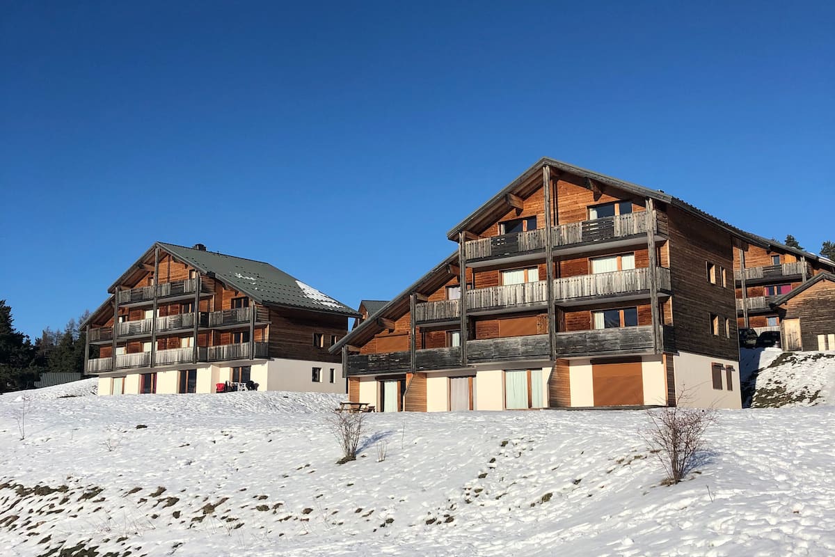 Ciepły kokon u podnóża stoków, z tarasem skierowanym na południe i zapierającymi dech w piersiach widokami na góry. Tutaj zakładamy narty od drzwi, wieczorem jemy fondue i cieszymy się spokojem natury. Górska atmosfera, wyposażona kuchnia, telewizor z internetem, zadaszony parking, zwierzęta mile widziane... Bezpośredni dostęp z budynku: centrum handlowe z restauracjami, barami, wypożyczalnia nart/rowerów górskich, supermarkety. Proste i wyjątkowe miejsce do regeneracji, latem i zimą.