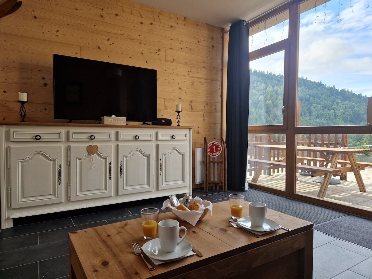 Między jeziorami a górami ciesz się zimą i latem. Apartment at the foot of the largest ski area in eastern France alt 955m. Idealne dla par,rodzin, miłośników przyrody, pieszych wędrówek. Widok na stoki narciarskie alpejskie i skandynawskie oraz wyjazd z apartamentu w rakietach śnieżnych lub dla pieszych. 10 minut od centrum Bresse ( sklepy,basen,lodowisko,restauracja itp.) i 10 minut od Gérardmer(jeziora), szczyty Vosges 3 km lub 20-25 minut pieszo.