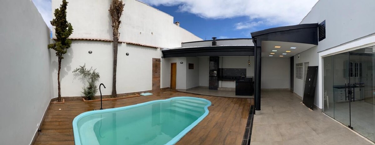 Casa em Barretos near the pawn park, thermas, hospital of love. Nowo wybudowany dom o powierzchni 150 m² z apartamentem i sypialnią, oba klimatyzowane, posiada również PODGRZEWANY BASEN i balkon o powierzchni 85 m², kompletny obszar dla smakoszy z grillem i narzędziami kuchennymi, lodówką i chłodziarką do piwa. 🏖 Atrakcje i pobliskie miejsca. ✅️ 10 Minutes Pean Park. ✅️ 07 Minutes of Thermas Barretos Coutry Hotel. ✅️ Barretos Park Hotel (Dentro Parque Peão. ✅️ 05 Minutos da Avenida 43. ✅️ 05 Minutos do Atacadão.