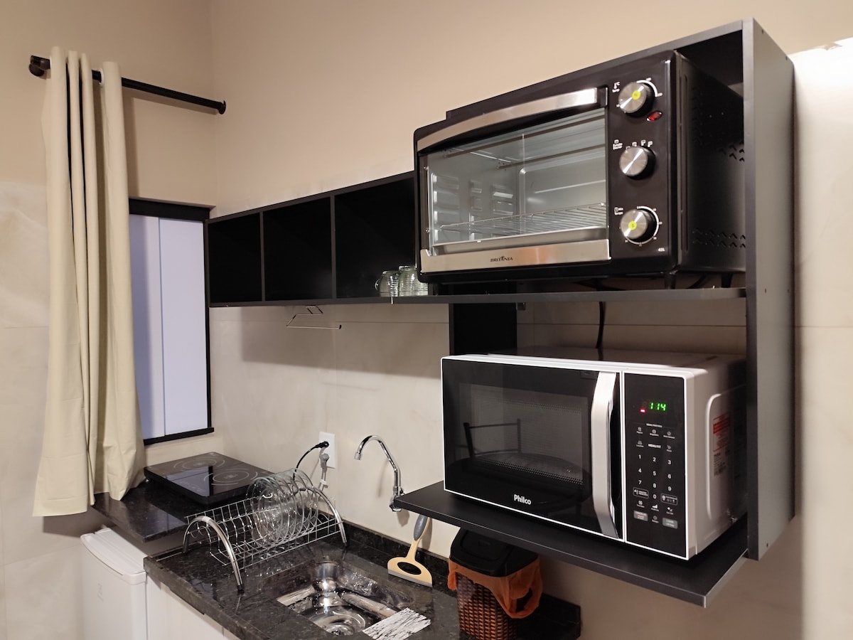 Poczuj się jak w domu w naszym uroczym Kitnet, idealnie położonym zaledwie 6 minut jazdy samochodem od Recinto da Festa do Peão, 7 minut od Hospital do Amor i 5 minut od Wydziału Lekarskiego. Bliskość siłowni, targowisk, piekarni i handlu sprawia, że Twój pobyt jest jeszcze wygodniejszy.
