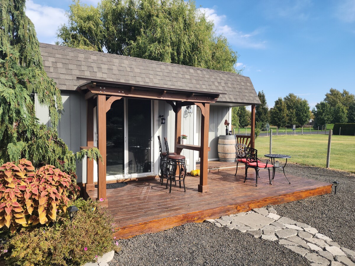 Poznaj małe życie w tym domku przypominającym chatkę (432 stopy kwadratowe + loft) położonym w centrum kraju wina. Znajduje się na dużym, prywatnym podwórku z prywatnym parkingiem i chodnikiem do drzwi (wymagane jest pokonanie kilku schodów). Jest wyjątkowo ustronny z widokiem na krajobraz, którym można cieszyć się na werandzie lub przy ognisku. W pobliżu College Place i tylko 10 minut jazdy do centrum Walla Walla. Świeżo palona kawa. *Teraz oferujemy gniazdo ładowania samochodów elektrycznych poziomu 2–50 AMP (NEMA 14-50R).