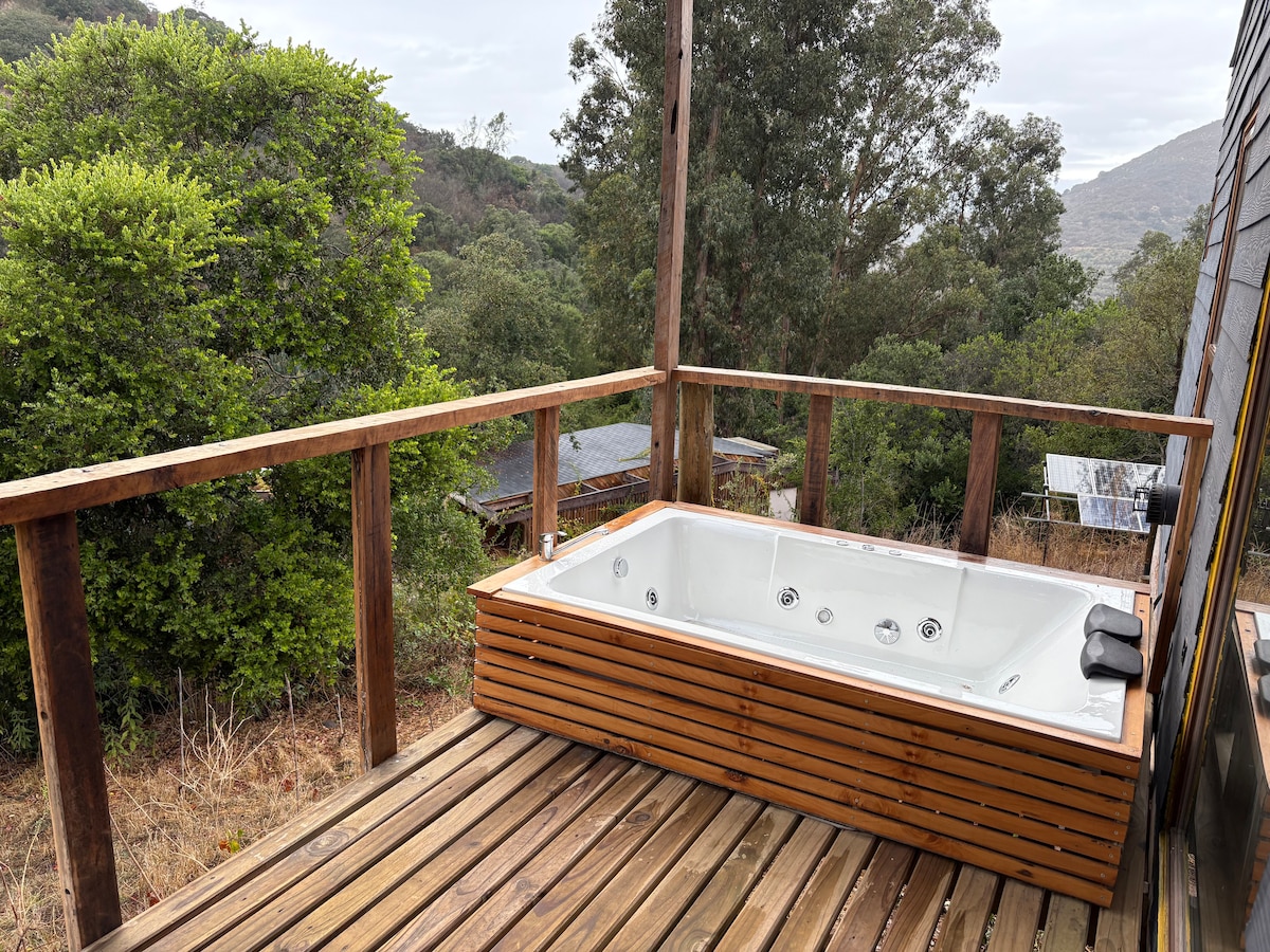 Minutes from Quintay & Tunquén beaches, 1.5 hour drive from Santiago, lies this rare find perfect for couples looking to chill & have fun. Your reservation includes the private guesthouse, use of outdoor hot tub, bbq area, parking, and own entrance. It's the perfect place to recharge, celebrate a special occasion, enjoy nature, relax, and explore! The guesthouse includes over 70 quality modern amenities, sleeps 2, & is clean & bright with a charming aesthetic. Meals also available.