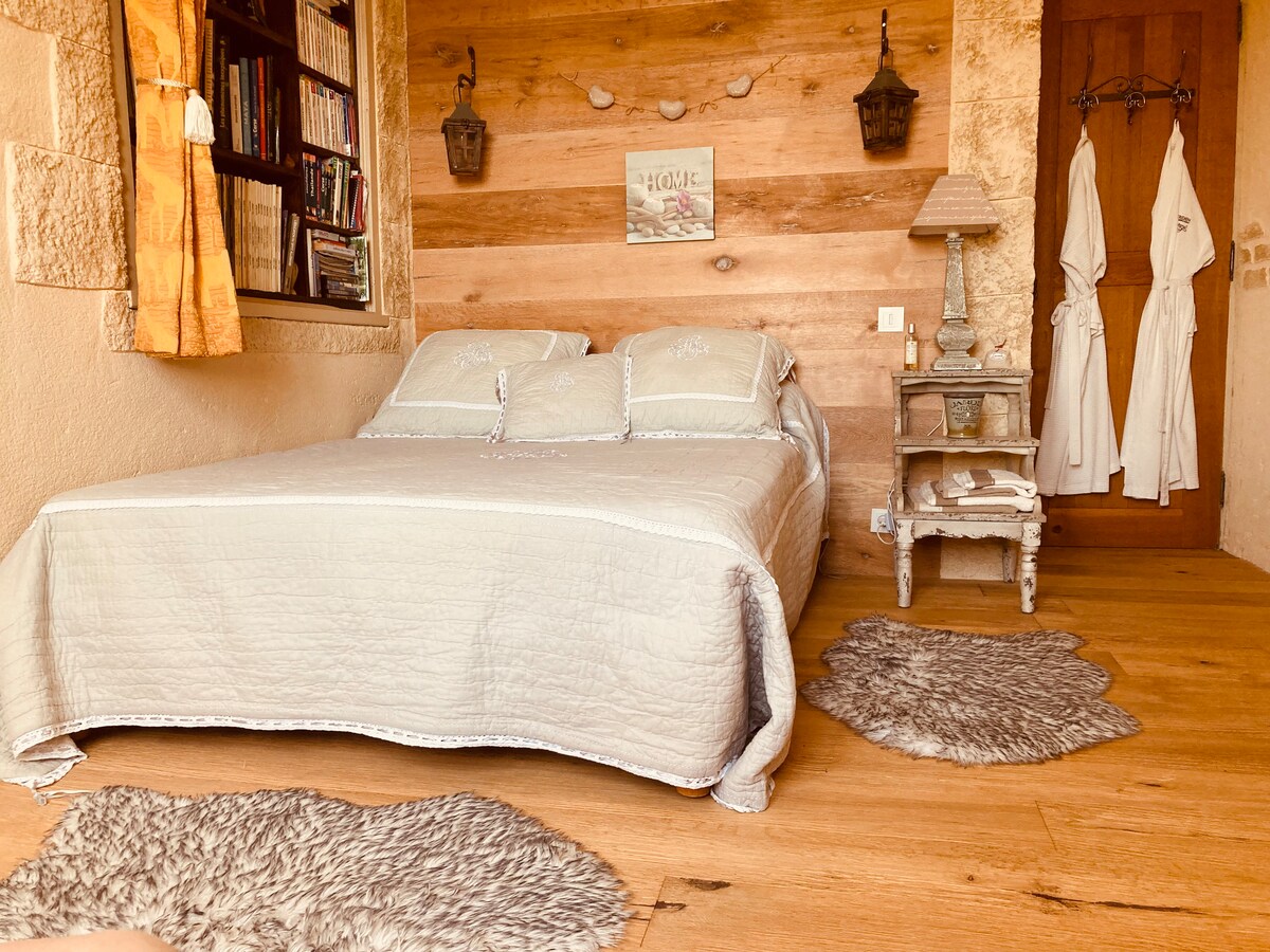 Uroczy pokój z łazienką i toaletą. Taras i leżaki pozwalają na relaks w otoczeniu dziewiczej przyrody! Znajdujesz się w samym sercu winnicy Frontonnais. Położony 10 minut od Fronton, 30 minut od centrum Tuluzy, 30 minut od Blagnac, 30 minut od Montauban. Jeśli jesteś miłośnikiem pieszych wędrówek lub kolarstwa górskiego, możesz rozpocząć swoją przygodę tuż przy tarasie! Możemy zaoferować śniadanie lub kolację, którą należy zamówić dzień przed przyjazdem.