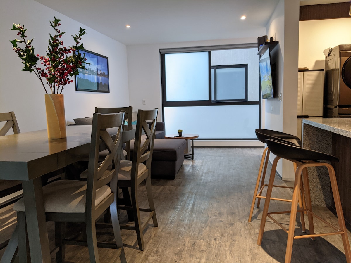Disfruta de este cómodo y luminoso alojamiento de 2 dormitorios y 2 baños está ubicado a solo 10 minutos a pie del WTC y a minutos del centro comercial Metrópoli. Además, cuentas con fácil acceso al metro San Pedro de los Pinos y una gran variedad de tiendas locales para todo lo que necesites. El departamento se encuentra ubicado sobre una avenida principal y como en cualquier ubicación urbana, puede haber ruido de la ciudad.