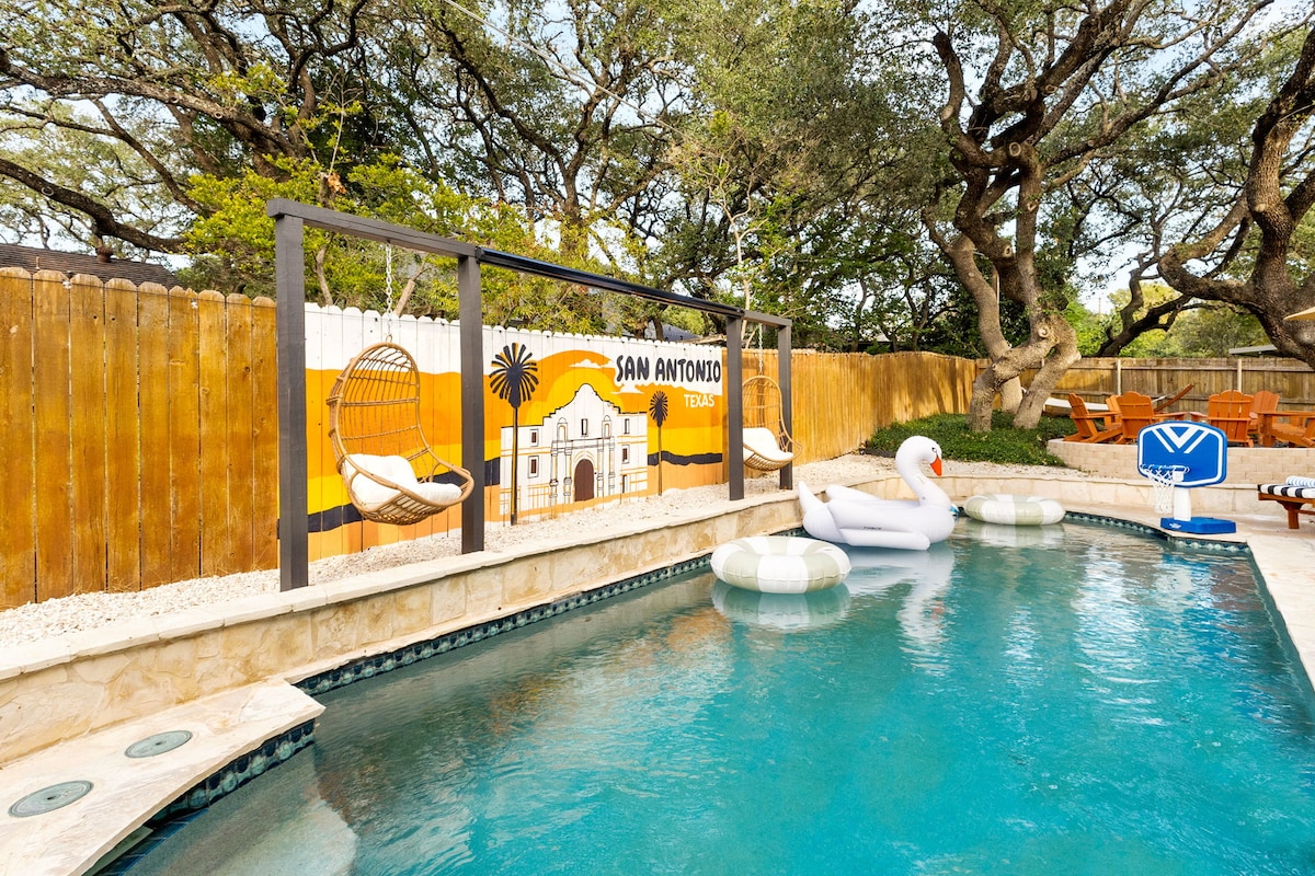 ✨Timeless-Texas-Inn✨ • An Expansive backyard now with Mini⛳Golf! - 🔥Heated Pool 🌊 - BBQ & a ton of games for ultimate Texan fun! • At night, the backyard glows with café lights -🔥fire pits - & a stunning gazebo, radiating TIMELESS décor & charm. • NEW MOVIE 🎦THEATER ROOM🍿- Game 🎮 room - 🎱pool table - 🎯darts - Arcades & board games - creating the ideal space for groups to make lasting memories in a picture-perfect setting! • 8min to KALAHARI • 12min to Domain • 20min to AUSTIN 🎸🎶