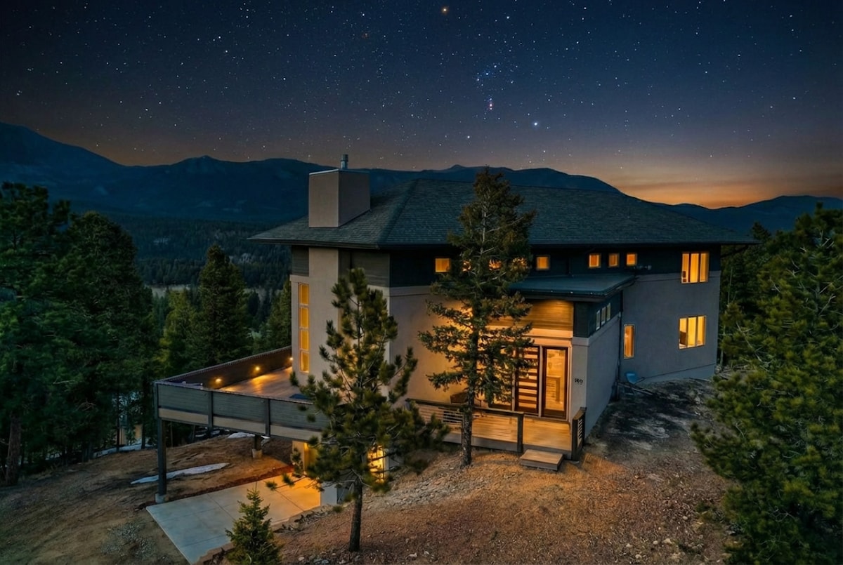 Architektonicznie ciekawy współczesny dom górski z 4 sypialniami dogodnie położony zaledwie 2 zjazdy na północ od I-25 od Akademii Sił Powietrznych USA i w pobliżu ponad 6 miejsc na ślub. Idealne miejsce na przyjęcie rodziny i przyjaciół na specjalne wydarzenie lub wypoczynek, który przypomina 4-gwiazdkowy kurort! Korzystaj z tarasów i palenisk, zrelaksuj się w hamaku lub zanurz się w wannie z hydromasażem. Przygotowanie wyjątkowego wyjazdu w kuchni dla smakoszy to czysta przyjemność. Zagraj w cornhole lub wybierz się na spacer w piękny dzień.