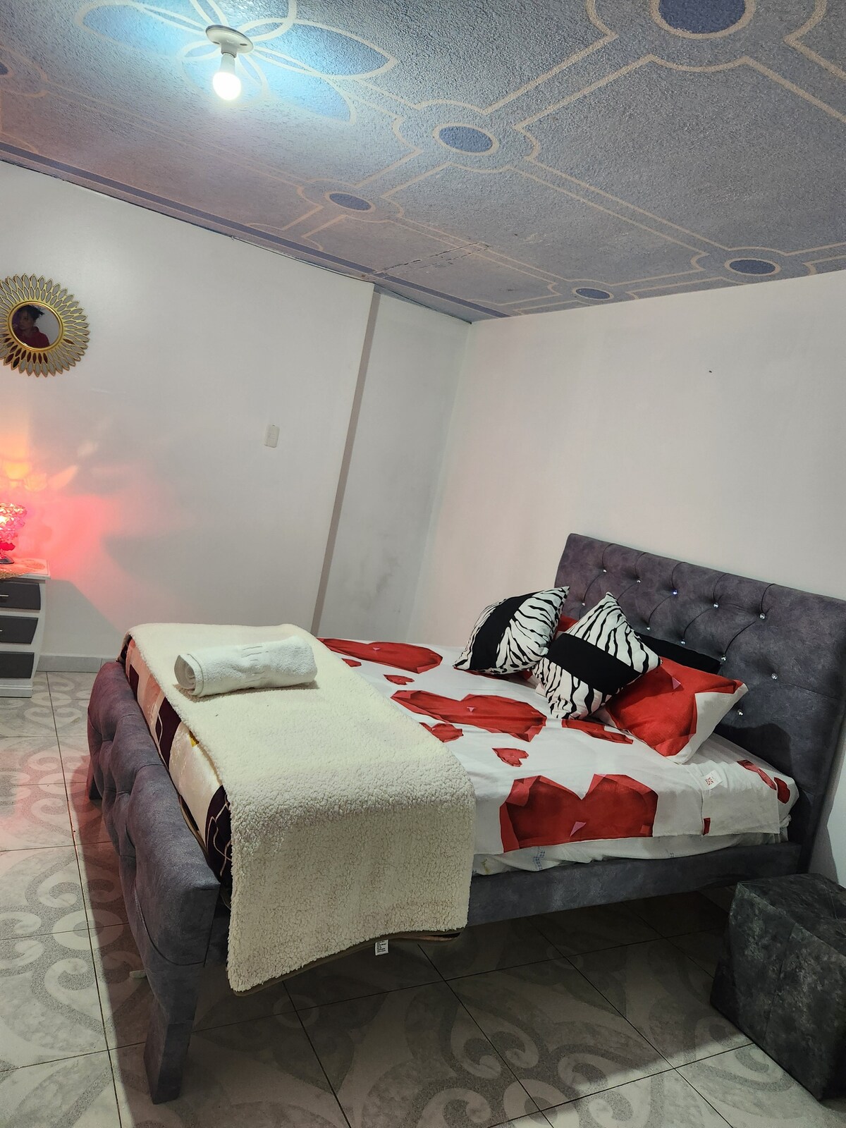 Enjoy a comfortable and peaceful experience in our apartment. Located in an excellent commercial area, with some of the most beautiful views of the snowy peaks and mountains of the city, just minutes away from the heart of Riobamba, close to Paseo Shopping and UNACH, and near several tourist areas of the city. A cozy place with a private kitchen, board games, PlayStation 4, streaming services, high-speed internet, in an ideal area for any activity to be done in the city.