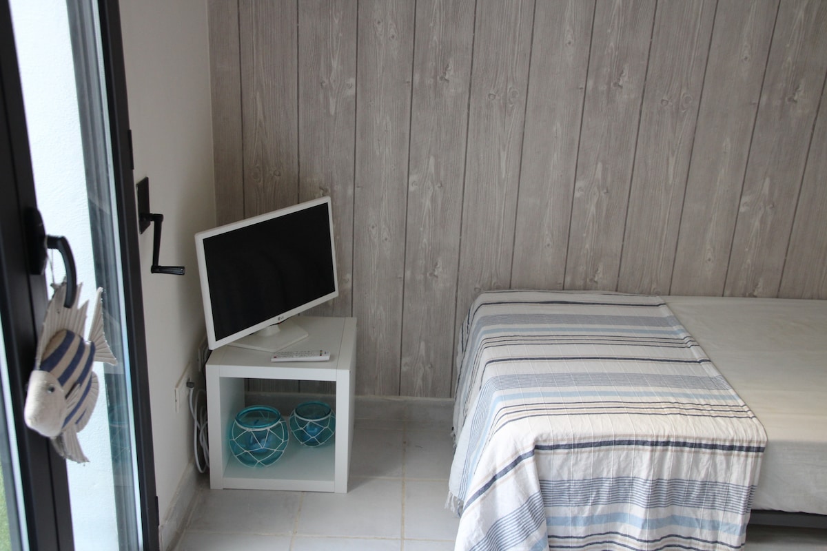 El Bungalow tiene una decoración sencilla, dispone de 1 dormitorio con 1 cama de matrimonio y un sofá de 2 plazas en el salon. Hay aire ACC., TV, baño privado con agua caliente. Hay un jardín con piscina de temporada y terraza con barbacoa y vistas al mar. Este establecimiento está rodeado de naturaleza en un lugar ideal para practicar actividades como snorkel, senderismo, mountain bike, etc. Suplemento 3 persona es de 20€/día en cama supletoria Toallas y ropa de cama incl. y mascota 5€/dia