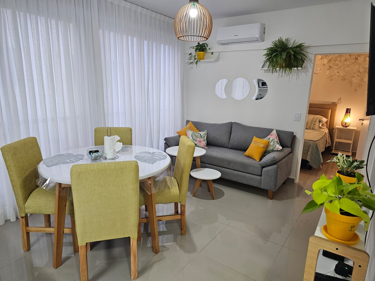 Coming back from a long walk to this apartment is a true relax. The living room offers a comfortable sofa to chill or watch TV. The table for 6 people can also be used as a study or work space. The bedroom has a comfortable double bed. The balcony, one more space, which proposes to sit and enjoy the view of the neighborhood, or simply rest, and for the guests, a toilette. The amenities offered by the building: gym, swimming pool, meeting room, games for children, grill and laundry.