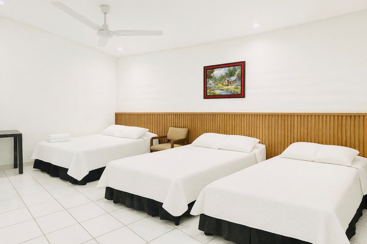 Disfruta de una estancia cómoda en habitaciones modernas con camas grandes, baños completos, aire acondicionado, Smart TV y agua caliente. Somos Milo’s Hostel & Residences, tendrás acceso a piscina, cocina compartida y áreas sociales. Perfecto para descansar cerca de Todo, restaurantes y puntos turísticos de Santa Ana.