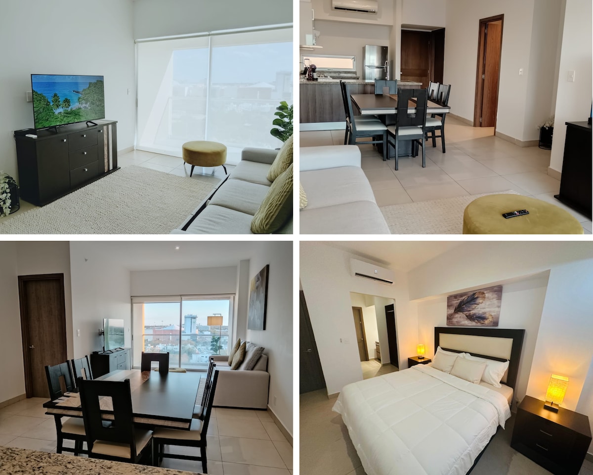 New apartment on the ground floor with easy access fiber optic internet Air conditioning in each room smart tv in each room (with cable in the main room) Ample covered parking with direct access to the apartment Heater equipped kitchen Small terrace inside the apartment Close to hospitals, schools, Plaza Altabrisa, high specialty hospital, Star Medica 5 min away; 3min from Walmart, macroplaza, Oxxo, restaurants, bars, and Periférico.