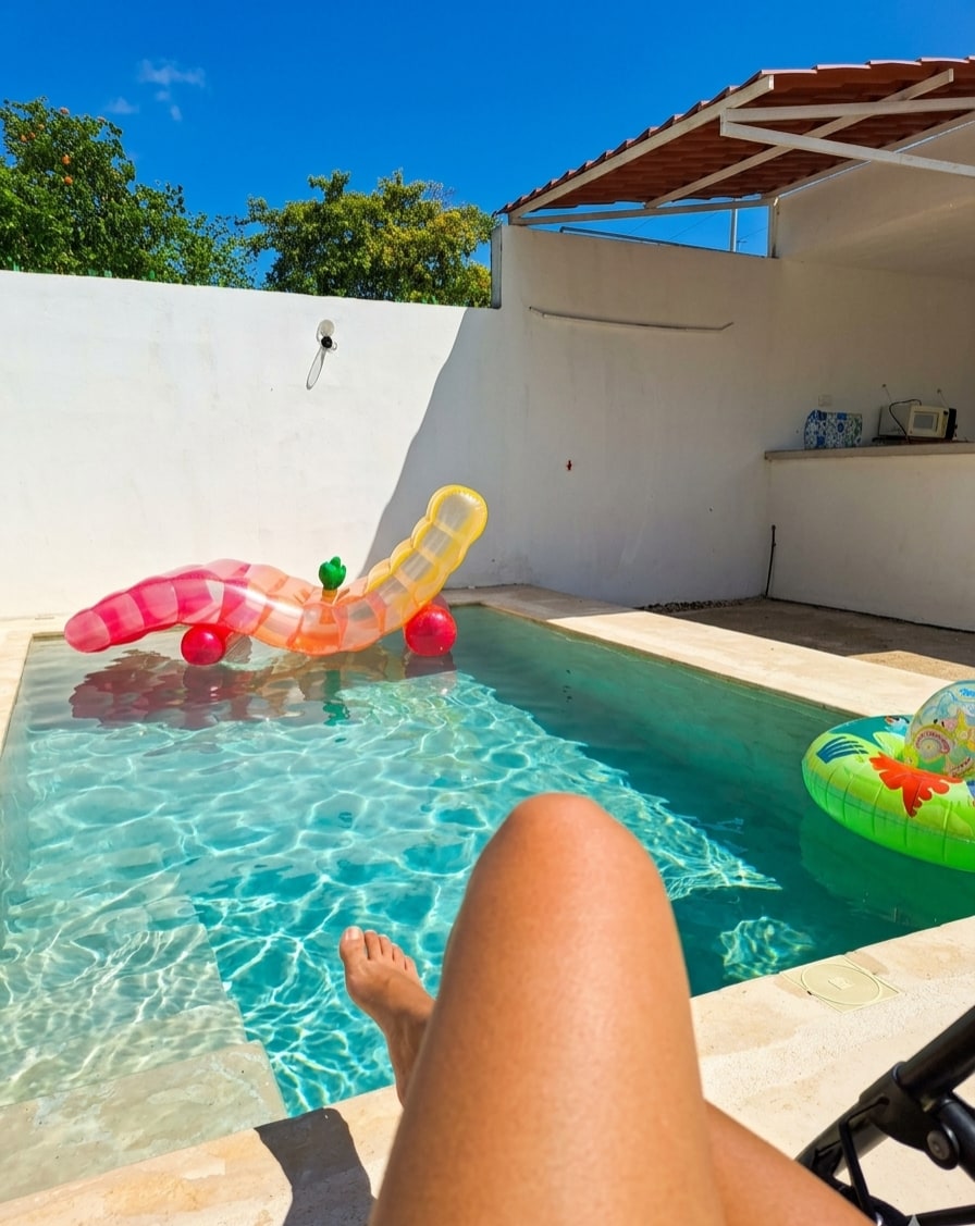 Disfruta de Casa Norka, una casa completa con piscina privada y encantador patio tropical, perfecta para relajarte y desconectarte del calor de Yucatán. Un espacio tranquilo y acogedor ideal para parejas, amigos o familias que buscan privacidad y comodidad. Relájate en la piscina, disfruta las hamacas o pasa una tarde al aire libre. Ubicada en una zona tranquila con fácil acceso a Mérida, restaurantes y atractivos de la región. Tu refugio tropical para descansar y disfrutar.