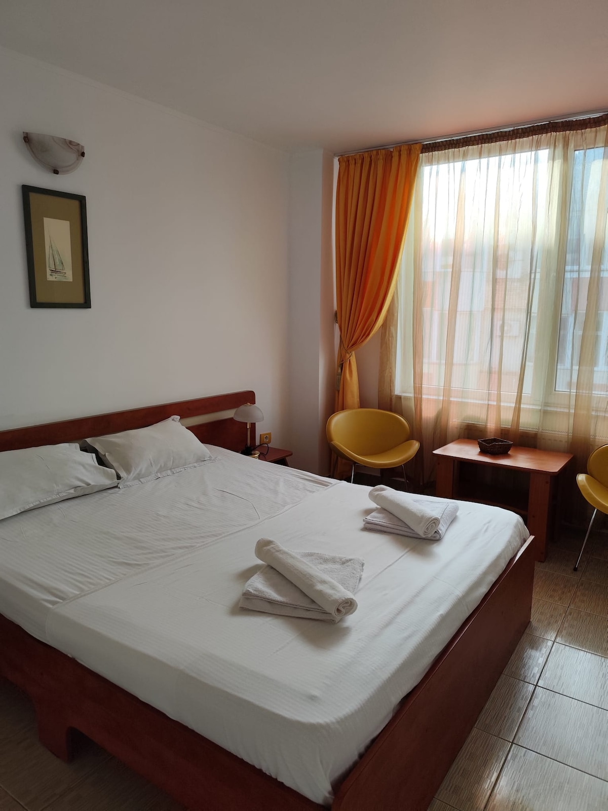 MAVBoutiqueVilla - Eforie Nord znajduje się w pobliżu morza, w spokojnej okolicy przy Sea Star) i jest otwarty zarówno latem, jak i zimą. AKCEPTUJEMY RÓWNIEŻ BILETY wakacyjne! Wyposażenie: *Pokoje wyposażone są w telewizor LED, mini lodówkę, klimatyzację, suszarkę do włosów i własny taras z krzesłami i stołem. *Na dziedzińcu można korzystać z grilla, miejsce na relaks z bujanym krzesłem, krzesłami i stołami. * Plaża jest 100-150m od hotelu z łatwym dostępem, z krzesłami do opalania i barami plażowymi.