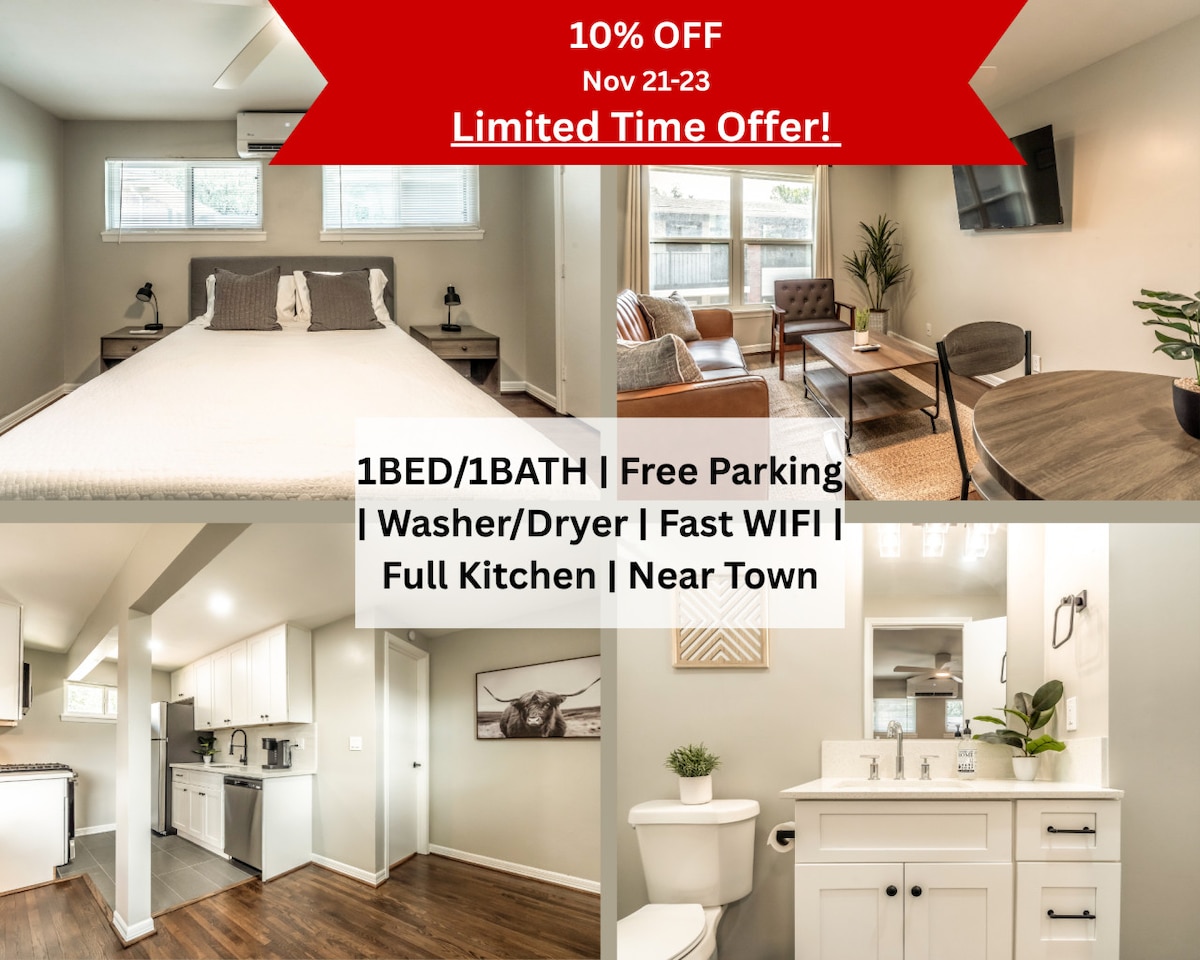 Witamy w naszym przytulnym i prywatnym domku gościnnym z 1 sypialnią i 1 łazienką, idealnym dla par lub osób podróżujących w pojedynkę, które chcą zwiedzić Houston! Położony 10-15 minut od lotniska Hobby, Texas Medical Center, Downtown i stadionu NRG, będziesz mieć łatwy dostęp do miasta. W tym miejscu czeka na Ciebie fioletowy materac typu queen, który zapewni Ci komfortowy sen, w pełni wyposażona kuchnia z kuchenką gazową, lodówką i zmywarką, pralka i suszarka, kostkarka do lodu oraz przestronna i nowoczesna łazienka.