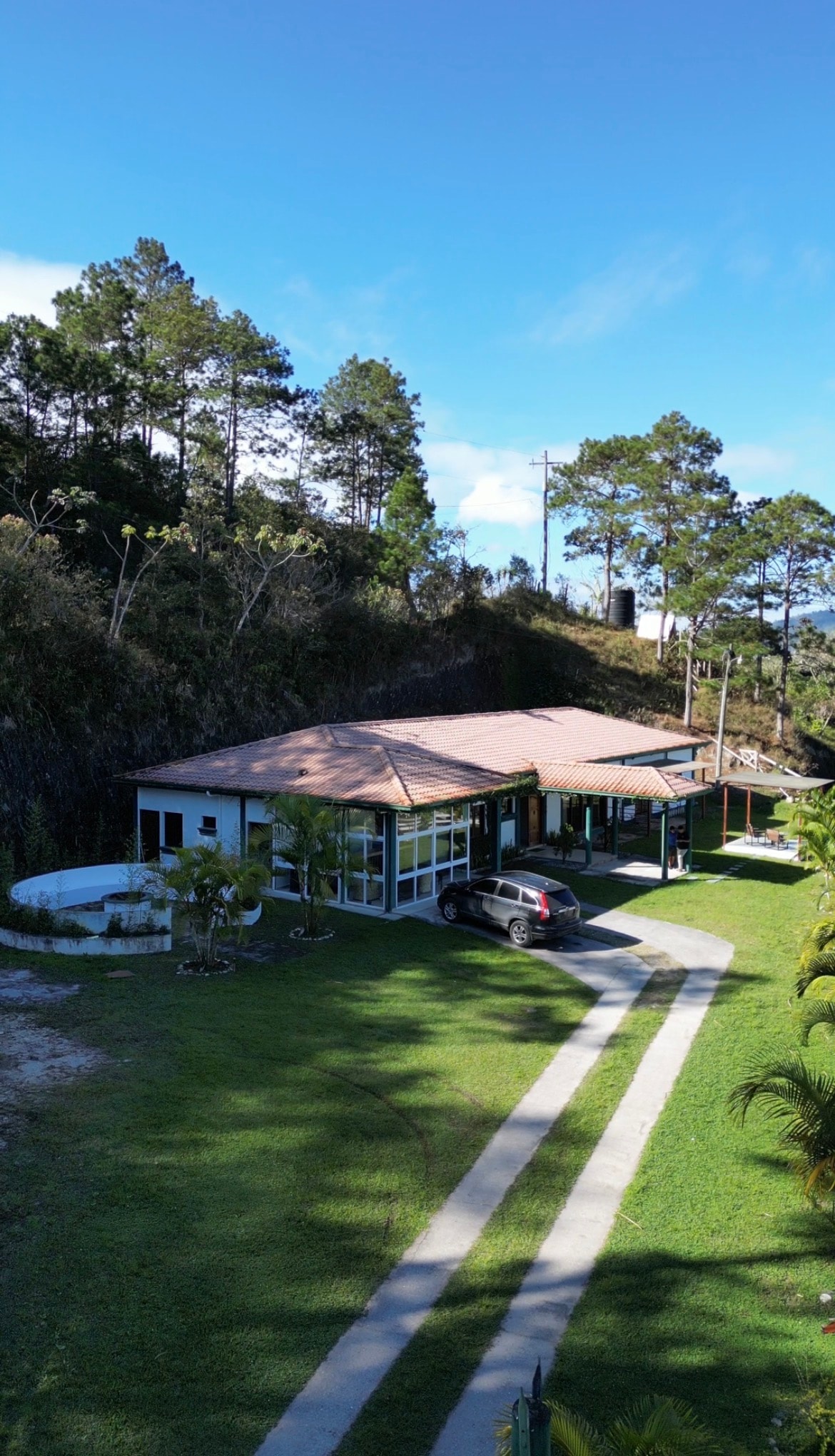 aventuras, buen ambiente, alejado del ruido de la ciudad, alojamiento único tiene mucho espacio para que disfrutes con los tuyos, cuenta con area de piscina, area de barbacoa, cabaña entre hermosa variedad de pinos, areas de parqueo, avistamiento de aves.