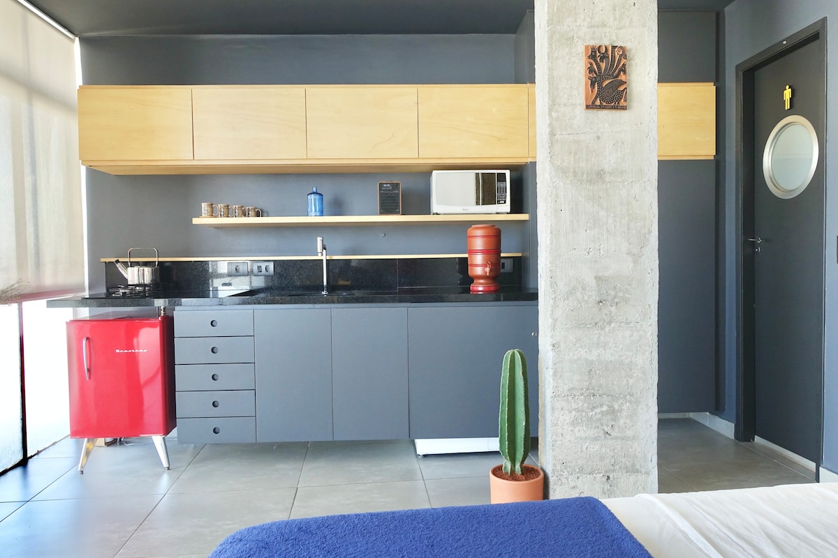 Studio zaprojektowane przez architektkę Ketlyn Melero, otwarty i nowoczesny plan na 28 piętrze słynnego budynku Copan z panoramicznym widokiem, zapewnia idealne warunki, aby Twój pobyt stał się niezapomniany. Copan to jeden z najważniejszych i najbardziej charakterystycznych budynków w mieście São Paulo. Jest symbolem współczesnej brazylijskiej architektury, zaprojektowanym przez architekta Oscara Niemeyera.