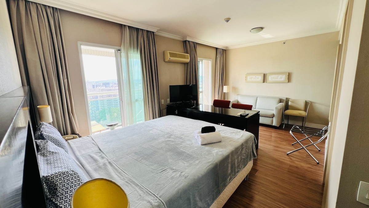 Chcemy Cię oczarować tym wyjątkowym i wygodnym miejscem w uprzywilejowanej lokalizacji, w pobliżu Av Paulista (150 m) i 8 km od lotniska Congonhas. Otoczony restauracjami, sklepami i mnóstwem rozrywki, ma dobrze wyposażoną siłownię, basen i świetną restaurację na parterze. Duża i jasna przestrzeń, oprócz kuchni wyposażonej w stół do jadalni, Smart TV, centralną klimatyzację, internet Wi-Fi. A prysznic jest zachwycający! Idealne do planowania wizyty.