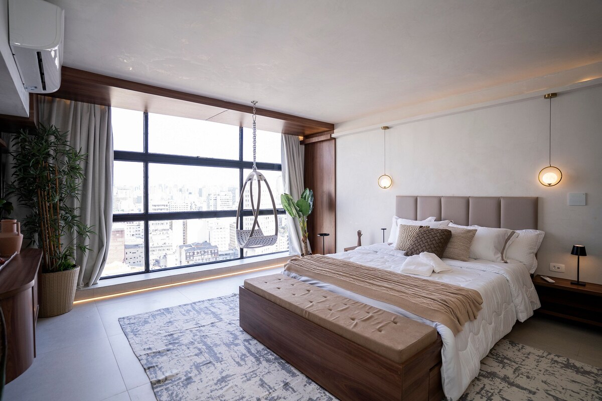 ✨ Na 31. piętrze kultowego budynku Mirante do Vale, w tym samym budynku, co Sampa Sky, Duque's Loft łączy luksus i wygodę z zapierającym dech w piersiach widokiem na São Paulo. W pomieszczeniu znajduje się wanna z hydromasażem z chromoterapią i ozonem, wygodne łóżko z telewizorem przed nim, wyrafinowany wystrój i łagodne oświetlenie. Idealne dla osób szukających ekskluzywnych wrażeń w samym sercu miasta.