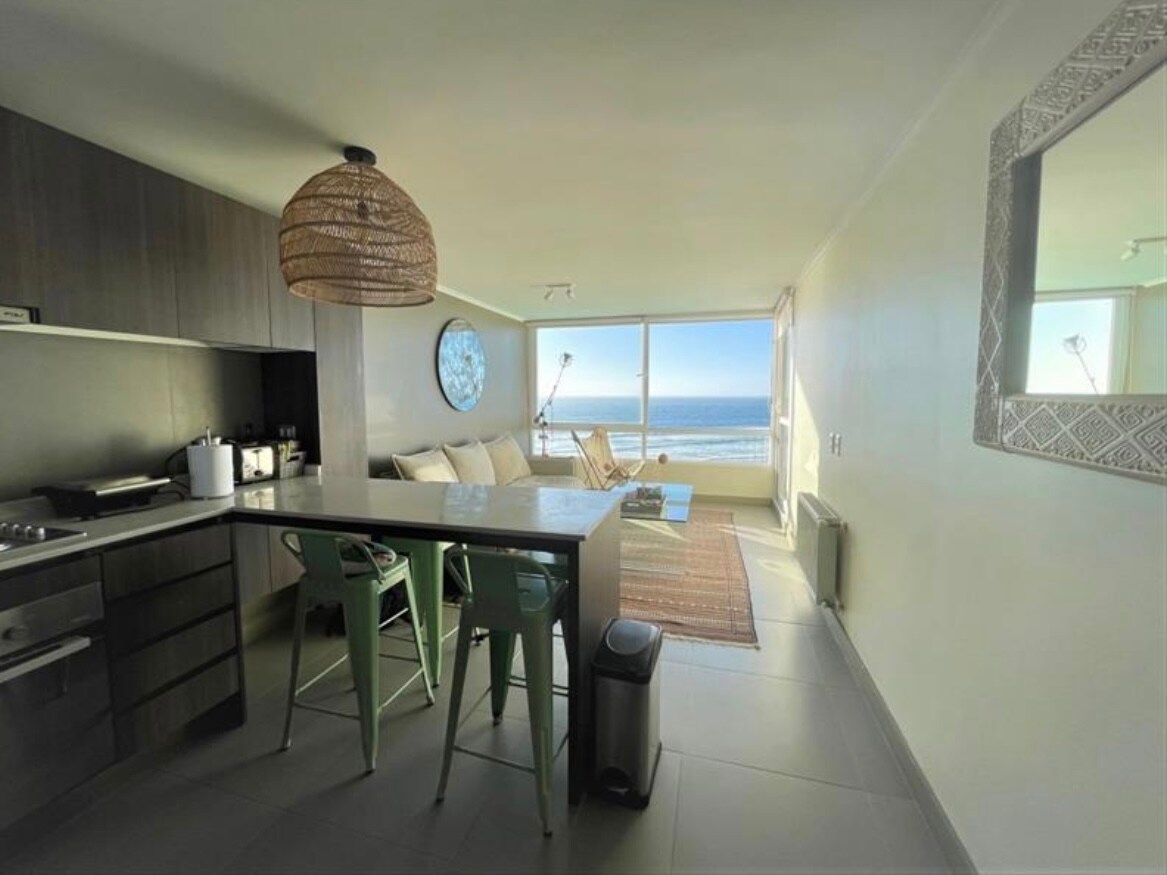 Zaledwie dwie i pół godziny na północ od Santiago znajduje się ten jasny dom o współczesnej architekturze, położony w pierwszej linii z widokiem na Ocean Spokojny. Po małych betonowych schodach można zejść do pięknej zatoki. Ponadto, kilka minut spacerem na północ i południe, znajdują się inne piękne plaże.
