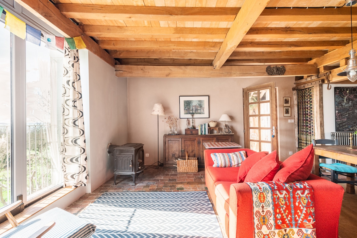 Na skrzyżowaniu Santenay, Hautes-Côtes de Beaune i doliny Maranges, ten uroczy XVII-wieczny dom winiarski może wygodnie pomieścić 4 osoby dorosłe. Położony wśród winnic, docenisz jego spokój, autentyczność, basen, ogrody i wspaniałe widoki. Bezpieczeństwo naszych obiektów nie pozwala nam przyjmować dzieci poniżej 12 roku życia.