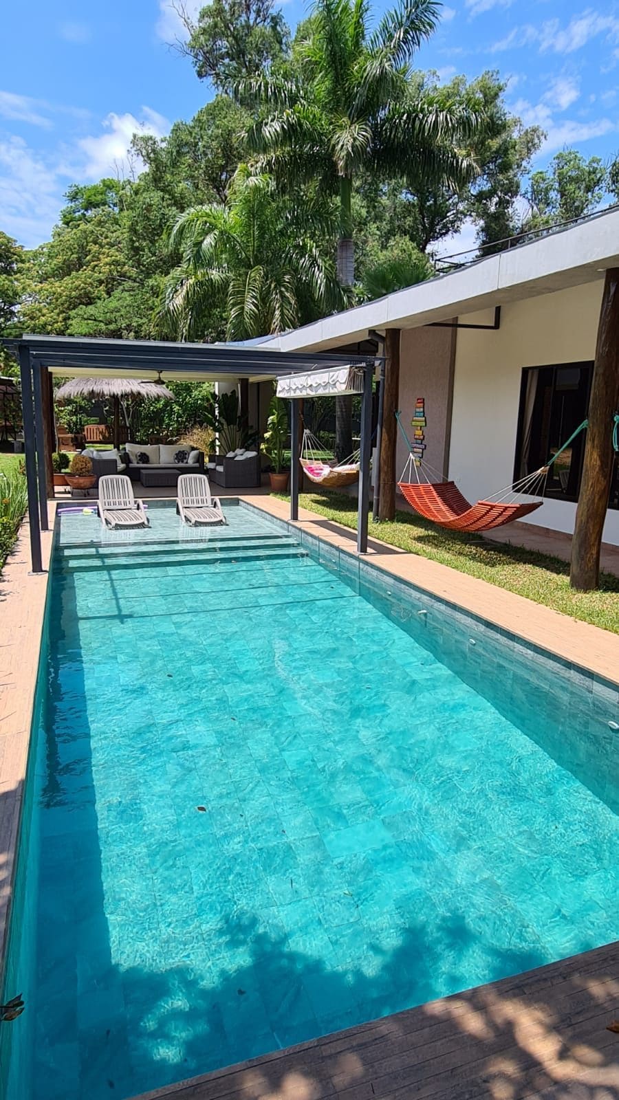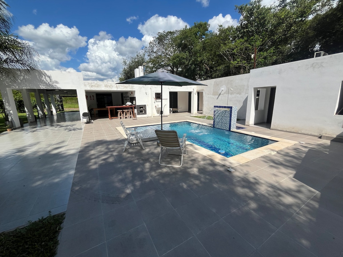 W pełni prywatny, przytulny domek w stylu cottage, aby uciec od miasta i zrelaksować się w otoczeniu połączonym z naturą, skierowany do tych, którzy lubią spokojne miejsca z wieloma zajęciami na świeżym powietrzu. 15 minut od centrum miasta Luque i 25 minut od międzynarodowego lotniska. Łatwy dostęp i sklepy z zaopatrzeniem w okolicy Będziesz mieć - w pełni wyposażona kuchnia - Boisko do piłki nożnej 5vs5 z naturalną trawą - 25-metrowe boisko do koszykówki – Basen o długości 12 m - Mały park rozrywki dla dzieci - Szybajt do pracy zdalnej
