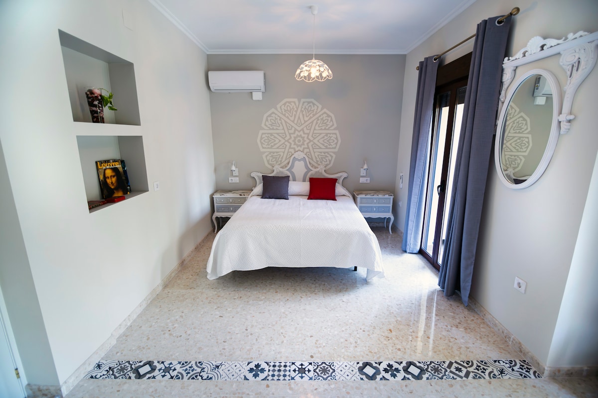 Jasny apartament, niezależny na piętrze domu, który jest domem rodzinnym gospodarza. Dom posiada taras-słoneczny o powierzchni 100 m2. Lokalizacja: w samym sercu zabytkowego centrum Kordoby – wpisanego na Listę Światowego Dziedzictwa UNESCO, w otoczeniu katedry z meczetem oraz centrum handlowego i rozrywkowego. Przytulny, w pełni wyposażony, cichy i starannie urządzony. Bardzo słoneczne, piękne widoki na ogrody w zabytkowym centrum miasta. Klimatyzacja. Łatwy dostęp.