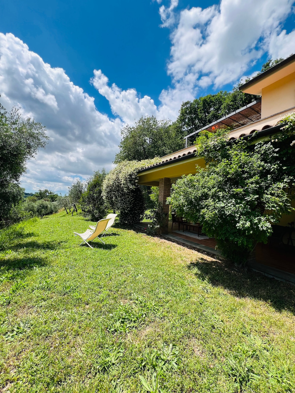 La depandance di 85mq e' immersa in un uliveto di 2 ettari ed è indipendente dalla casa di proprietà. Cosi composta: ampia camera da letto, bagno, cucina, salotto; è adatta a famiglie, coppie e singoli che vogliono trascorrere un soggiorno in totale relax, godendo della piscina infinity pool, dell'area BBQ e del giardino. Tutto in esclusiva, abbiamo solo un ospite a volta. Inserita nelle verdi colline Sabine è vicina a tutti i servizi e ben collegata a Roma e Fiumicino Aeroporto, auto e treno.