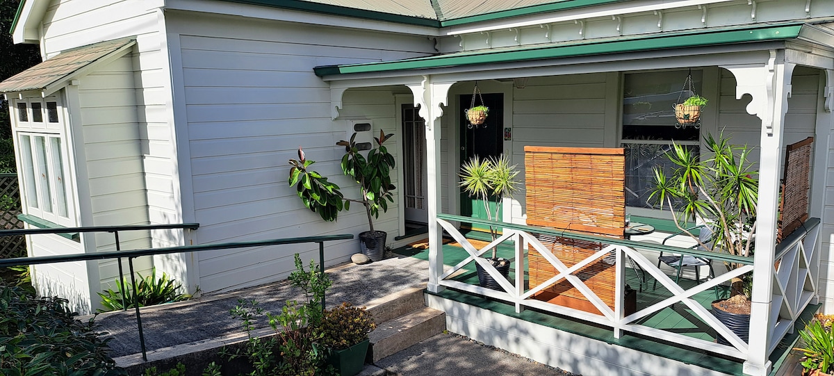 A lovely, stylish and fashionably decorated 1940's character home in a quiet neighbourhood. Light, sunny and modern open plan kitchen and dining area, with bifold doors to a large sunny deck. The living area is spacious with a TV and a built-in fireplace. There are two bedrooms with queen-sized beds and a sleepout with a single bed. Parking won't be a problem with enough off street parking for 3 cars.