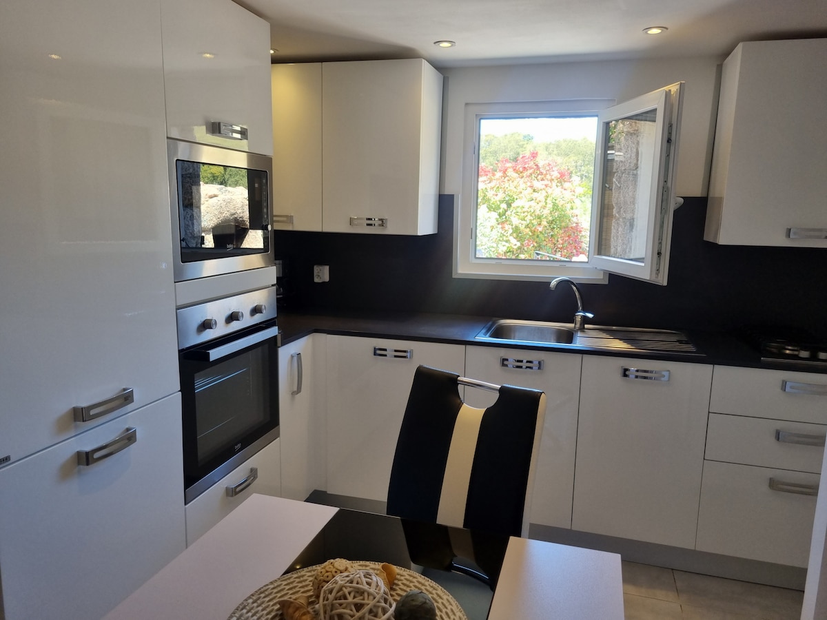 Complètement indépendante, située dans un village au calme sur la rive sud, Bastelicaccia, à 10 minutes d'Ajaccio et des plus belles plages de Porticcio. Lac de Tolla et montagne à 20 minutes. Climatisation individuelle dans chacune des pièces , cuisine ouverte sur salon. Four chaleur tournante, lave-vaisselle et linge, micro-onde, frigo/congélateur, plaque induction. Salon équipé d'un canapé avec écran plat de 102 cm. 2 Chambres , lits 140 , miroirs, placards muraux. Wifi gratuite