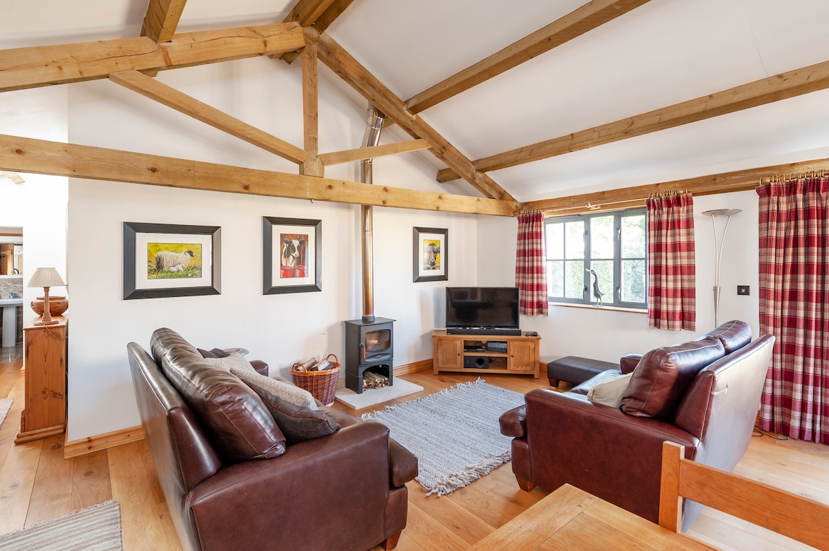 Located on a large farm, relax at this beautifully converted barn whilst enjoying the magnificent sweeping views across the countryside. This is a truly special place to get away from it all. Perfect for friends getaways and families, this spacious barn has two generous seating areas that lead out onto an outdoor seating area. Enjoy a barbecue for dinner followed by some stargazing around the fire pit. In winter, underfloor heating and log burner will keep you cosy. The views are all year round!