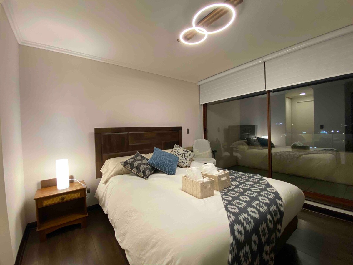 Idealny pobyt w Concepción! Nowoczesny apartament z 1 sypialnią, idealny na podróż, pracę lub szybki przystanek. Zaledwie 5 minut od lotniska i 3 minuty od centrum handlowego. Bezpieczna i cicha dzielnica mieszkalna. Ciesz się komfortem, stylem i wszystkim, czego potrzebujesz, aby świetnie spędzić czas. 🛏️ Podwójne łóżko + pojedyncza sofa 🌇 Prywatny taras 🏋️ Dostęp do siłowni i pralni 🚗 Bezpłatny parking 📡 Szybkie Wi-Fi + telewizja 🍳 W pełni wyposażona kuchnia Zarezerwuj teraz i poczuj się jak w domu!