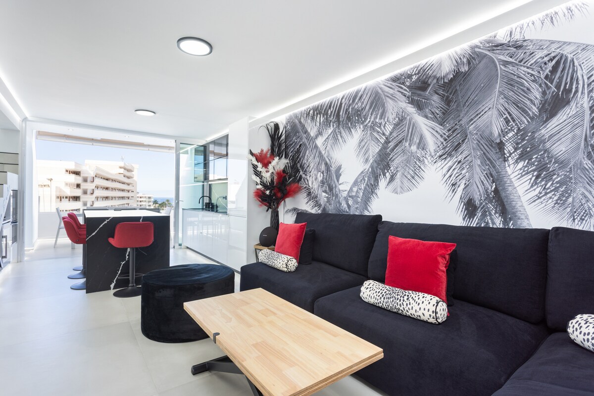 Checkout my fully equipped 1 bedroom newly renovated and comfortable apartment in the heart of Playa de las Americas (the most vivid region) in Tenerife just 1 street from the sea! Enjoy the direct ocean balcony view, a king size anatomic double bed, free Wifi up to 300Mbps, free access to the pool, free parking, new IKEA kitchen with oven and all kitchenware of highest quality, new electric appliances, sleeping sofa, laundry, LCD TV and much more!