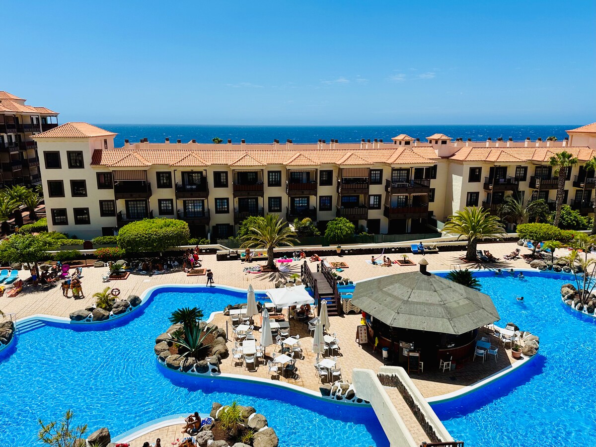 Desconecta de la rutina en este alojamiento único y relajante. Podrás desayunar frente al mar, disfrutar de una vista panoramica desde el Teide hasta el oceano Atlantico. Un apartamento tranquilo, coqueto, con wifi de alta velocidad, canales de TV internacionales (IPTV), y todo tipo de negocios a poca distancia. El complejo ofrece una piscina espectacular, con zonas de descanso, para tomar el sol o bañarse.
