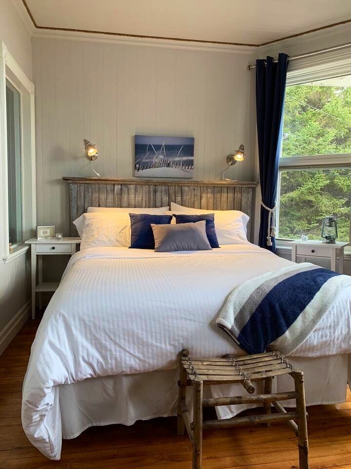 Urokliwy, przestronny, odnowiony pokój w pobliżu morza, z dużym łóżkiem i niesamowitym widokiem na rzekę St. Lawrence! Gospoda znajduje się 30 min od Parku Narodowego Gaspésie, 15 min od ZEC, 10 min od Éole, najwyższego pionowego wiatru na świecie, 10 min od Outdoor Center (Centre de plein air) i w pobliżu wielu innych atrakcji. Gospoda jest idealnym schronieniem dla entuzjastów wypoczynku na świeżym powietrzu, tych, którzy szukają ciszy i spokoju, a także dla turystów odkrywających nasz piękny region!♡