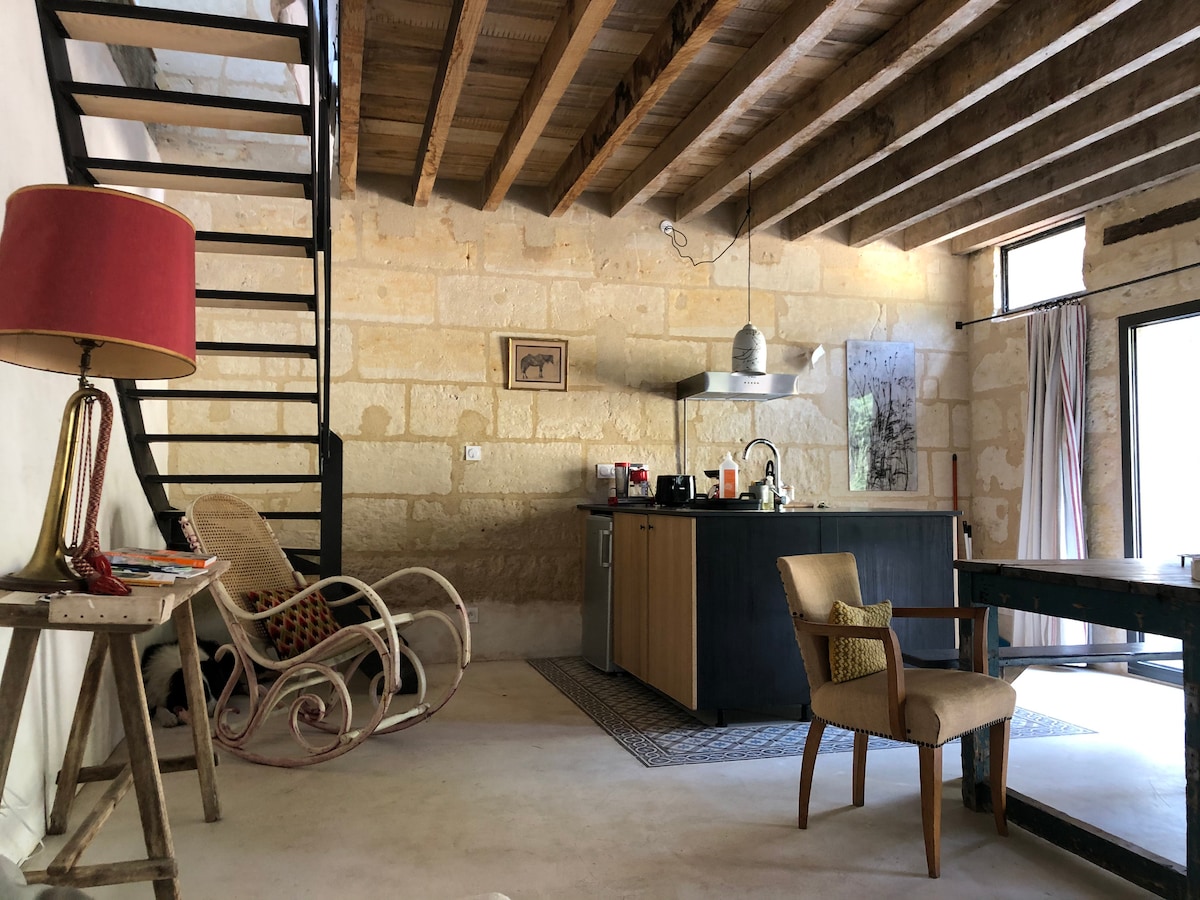 Le Coteau a un charme fou. Sa mise en couleur, ses meubles chinés, son lit confortable qui permet de passer du King size à deux lits séparés, sa cuisine moderne bien équipée, sa lumière et les carreaux ciments de sa salle de bain, tout a été réalisé pour une atmosphère qui marie ancien et moderne. C'est notre coteau du Loir préféré, à gouter non plus avec les papilles, mais avec le regard...
